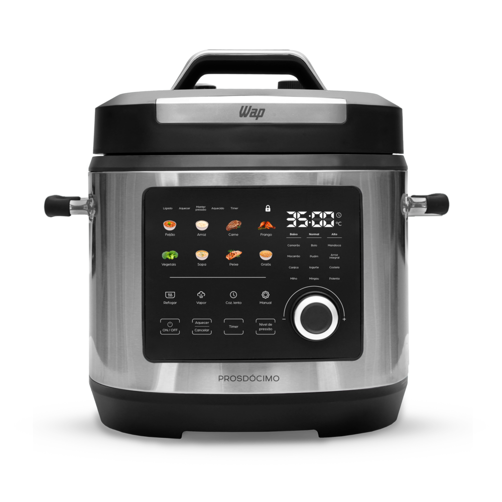 A Panela de Pressão Elétrica Touch 6L foi feita para quem busca praticidade e segurança no dia a dia. Com Capacidade de 6 litros, é ideal para quem cozinha em tamanho família, enquanto os 10 dispositivos de segurança garantem total tranquilidade durante o preparo.